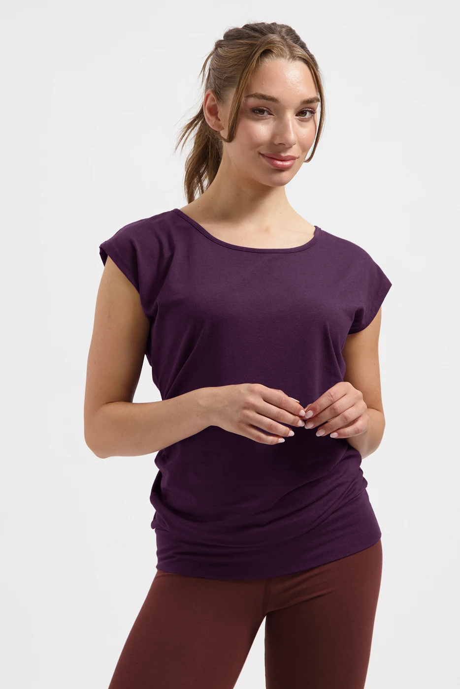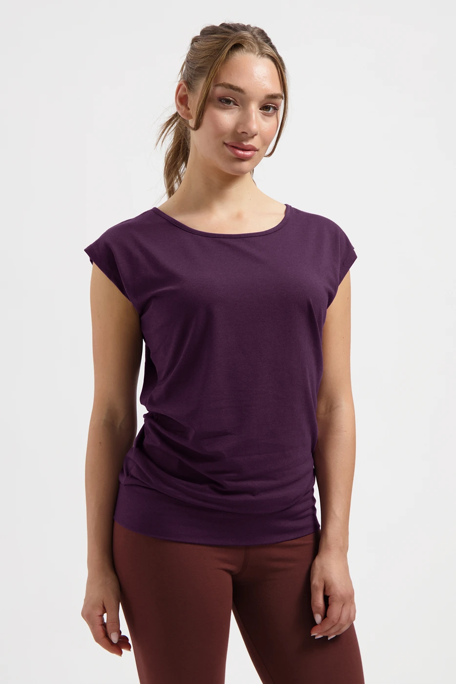 Due to the high percentage of bamboo, this yoga top is also naturally dry-fit. So you always smell fresh, no matter how much you sweat during your practice. Wear the Asana sustainable yoga tee with yoga pants or leggings. It's also a great throw on, before or after your yoga practice. And therefore, like many other yoga clothes from Urban Goddess, easy to wear on and off the mat.