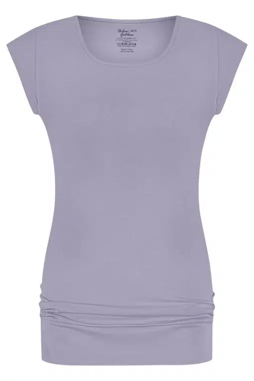 Super comfortable and easy to style loose fit durable yoga tee with a wide hip belt. This yoga shirt can be worn for most types of yoga styles, from restorative and yin, to vinyasa and ashtanga yoga. The hip belt ensures that you stay nice and warm and keeps your lower back, kidneys and stomach covered.