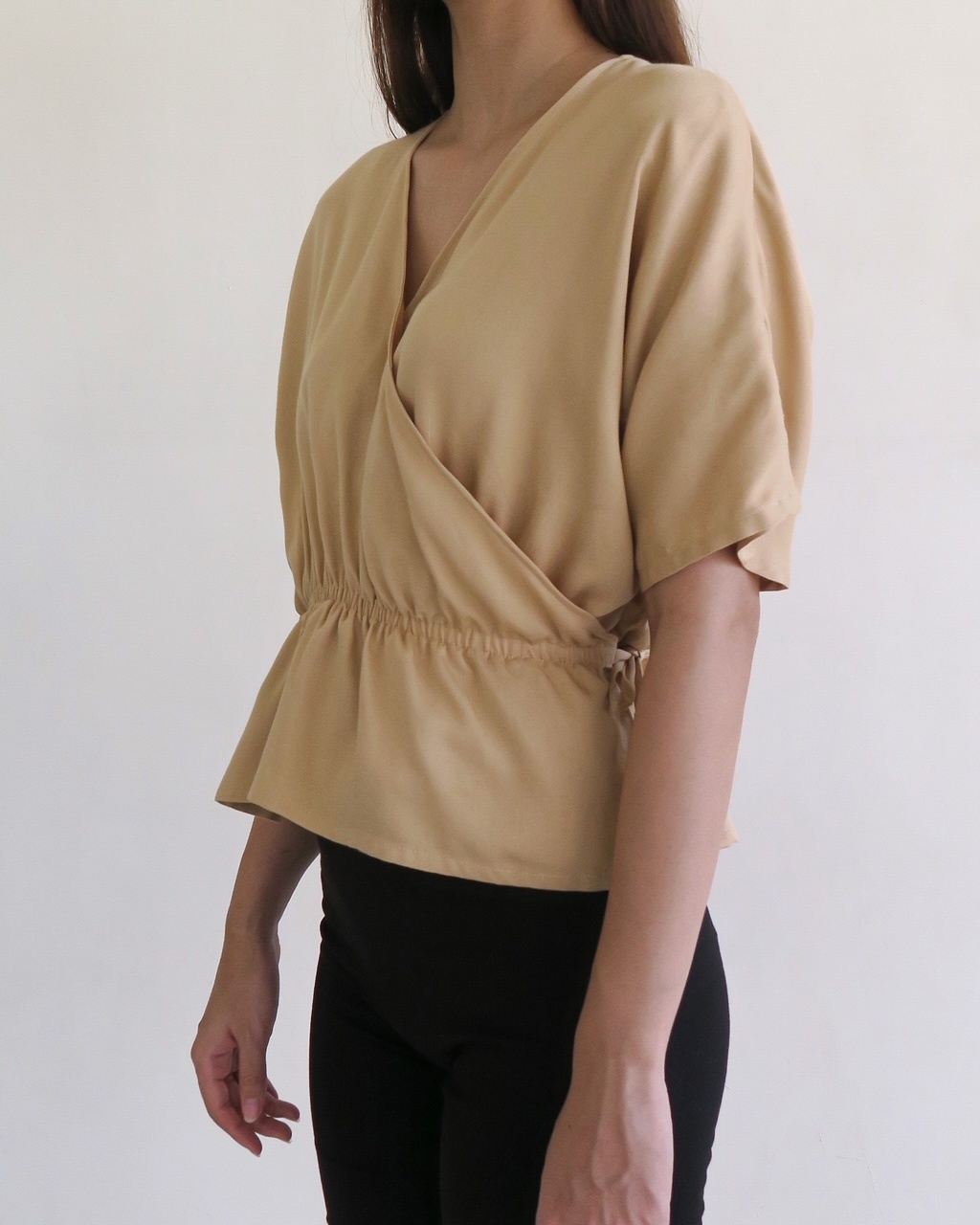 Say hello to Ava Top. This simple silhouette features a wrap front and a side tie. It can also be worn as a chic cover-up.