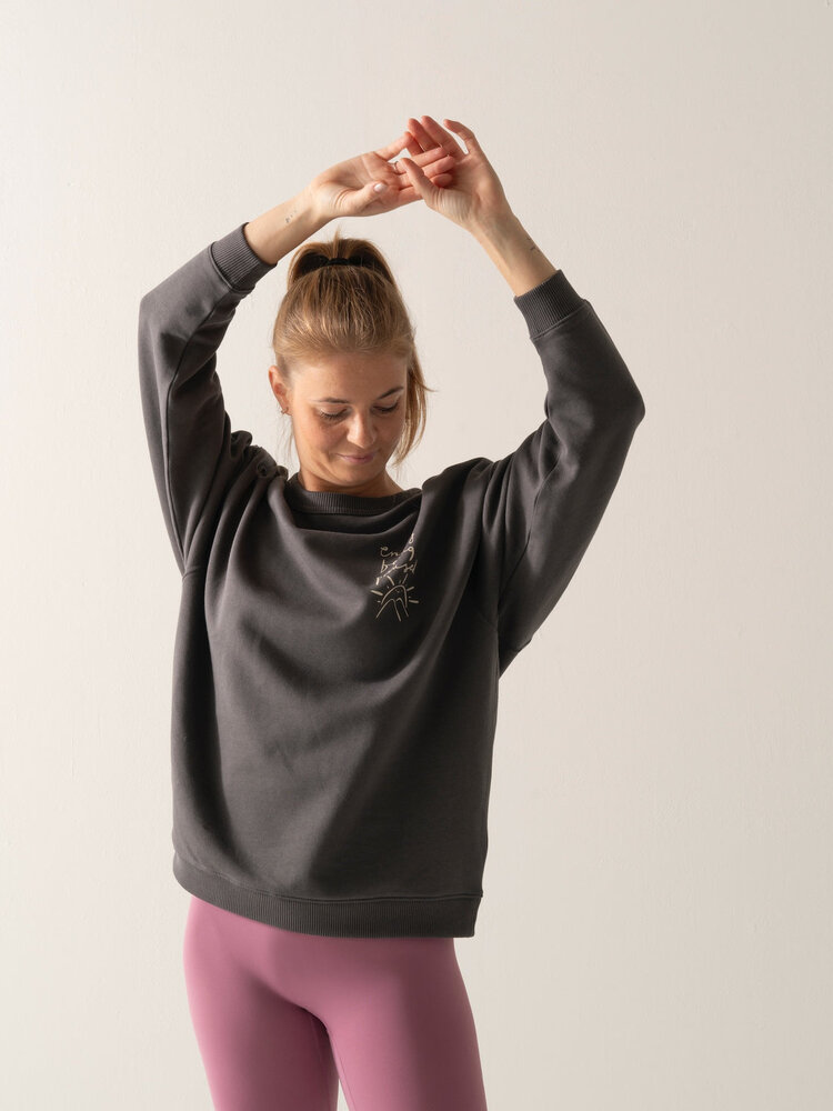 Designed by Rotterdam illustrator and yoga teacher Gozde of The Moody Society, it features a simple sunrise illustration that quietly encourages you to enjoy slower moments. Made from super soft, 100% GOTS-certified organic cotton, this sweater is as kind to the planet as it is comfortable on your skin. The relaxed, oversized fit and deep anthracite color make it perfect for layering, lounging and taking it easy.