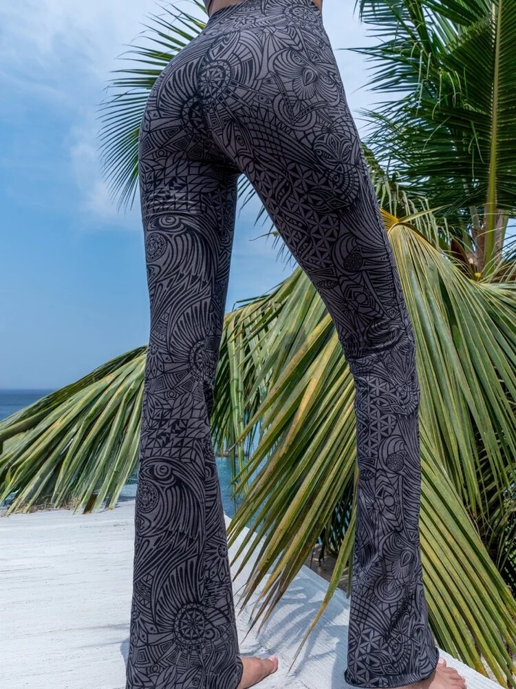 This pair of original bootleg leggings come in a black/grey tribal print with a flare starting just by the knee. Our yoga flares are perfect to stretch in as the high-quality cotton spandex moves and moves with your body. No more worrying about your leggings getting baggy at the bum or knees, their 4-way stretch means that they hug your figure at all times.