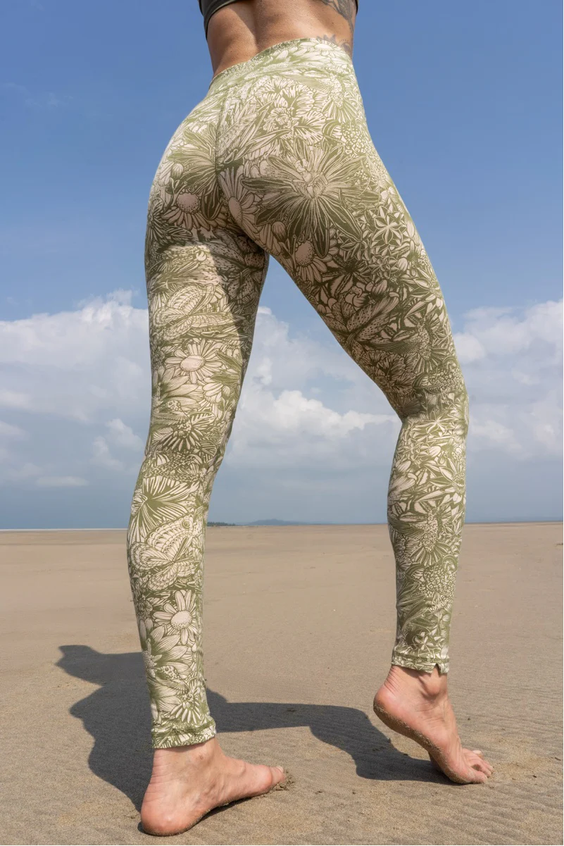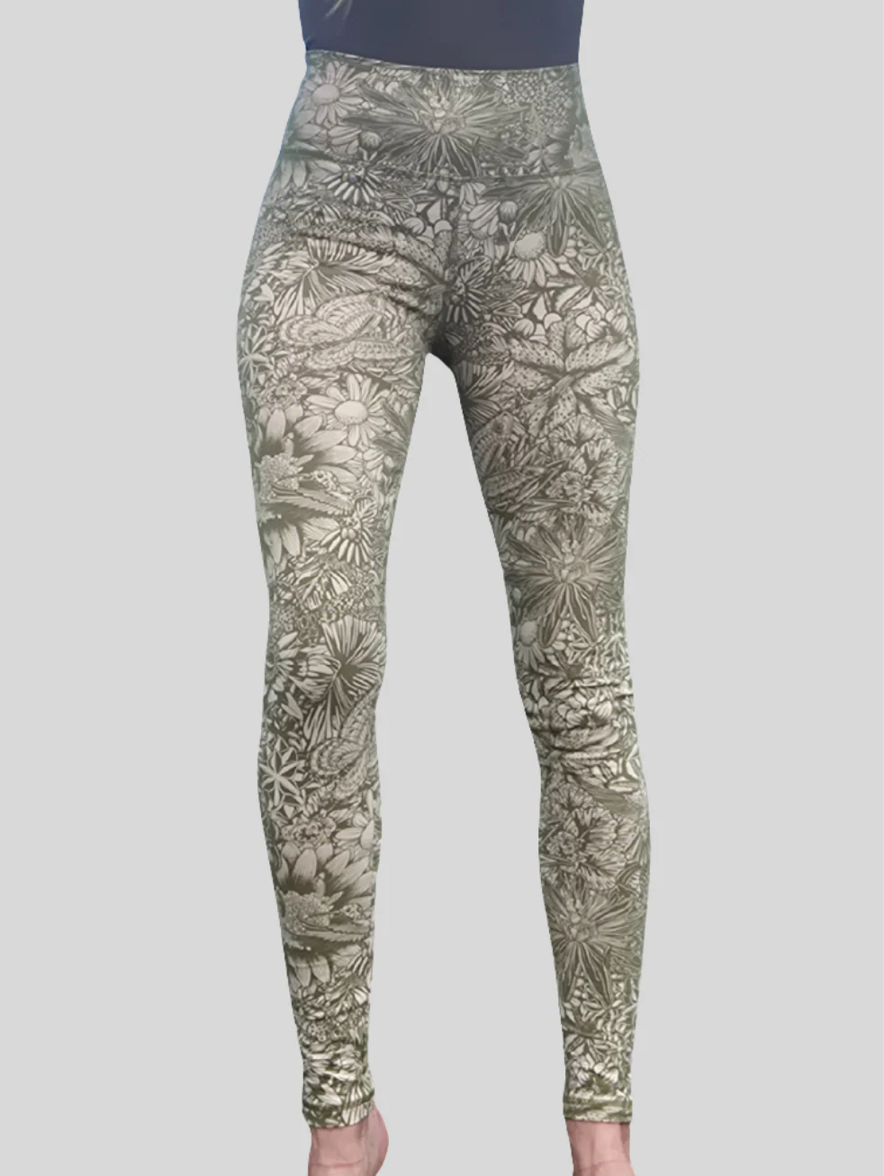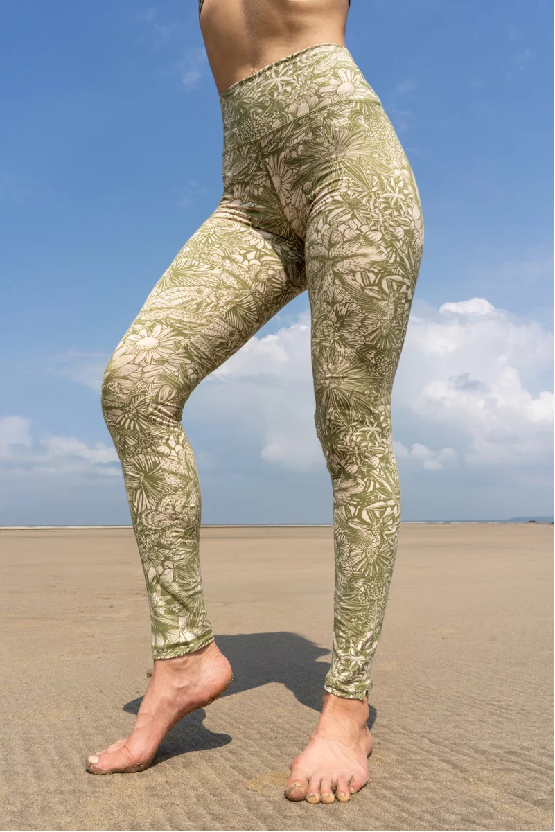 High Waisted Cream Leggings with our Olive Bloom print. These have a wide band that sits very comfortably around your waist. You can fold over the band as well, to make your waist-line at the exact height you prefer. And keep your love handles in check.