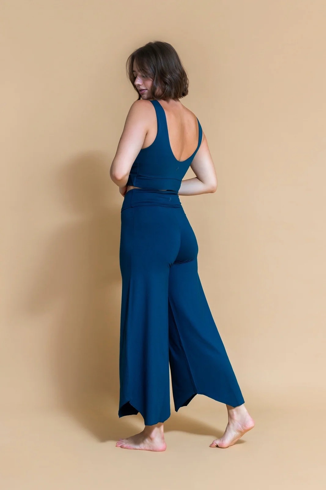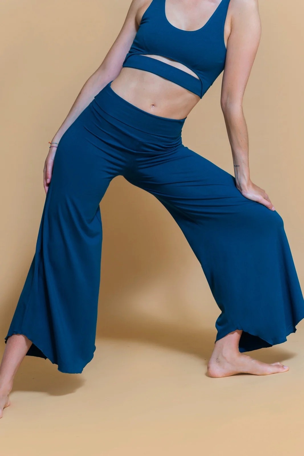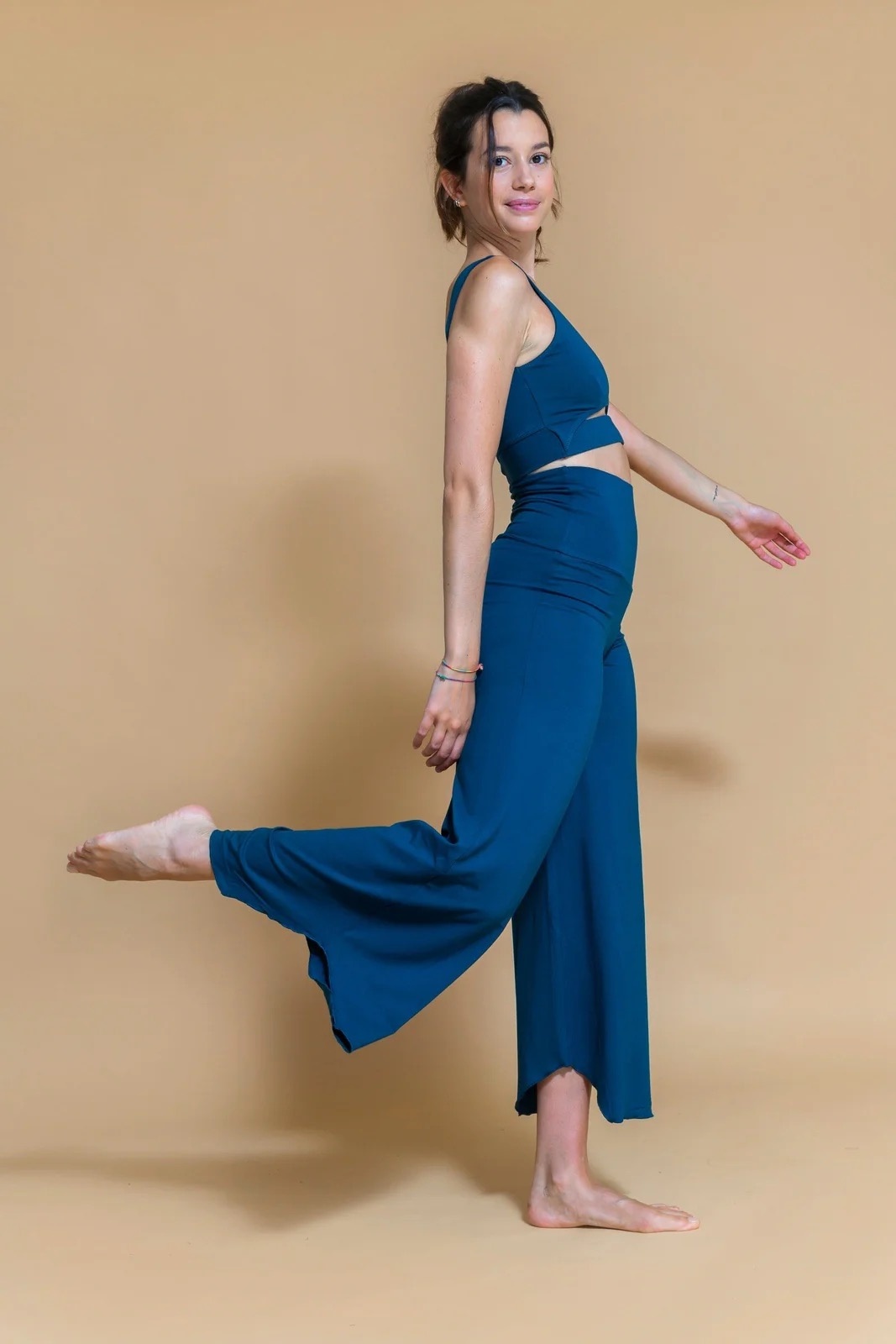 It's high and foldable waist ensures a personalized fit, enhancing your comfort during both practice and daily activities. The pants feature a gentle flare, creating an elegant and fluid outline. The high-rise waistband offers adaptable styling options, and the Bamboo and Elastane blend fabric provides a soft, ensuring both comfort and eco-consciousness.
