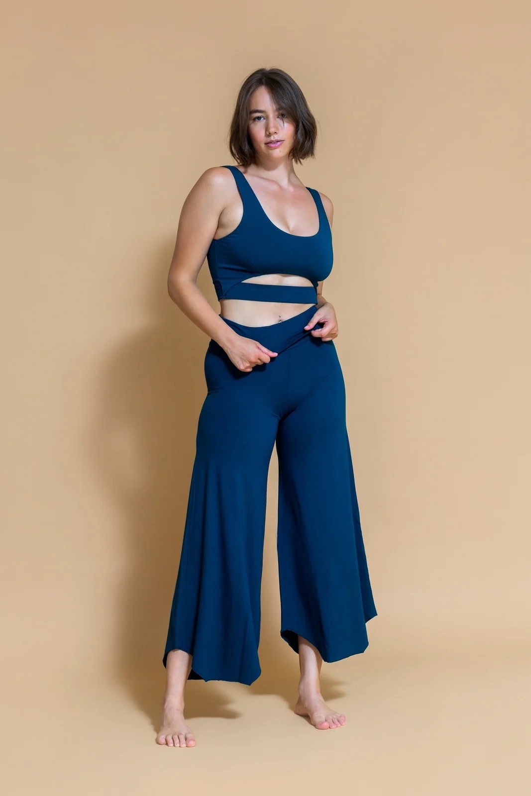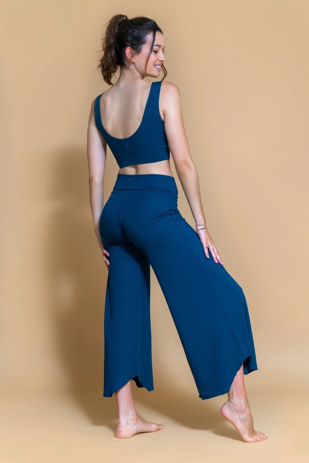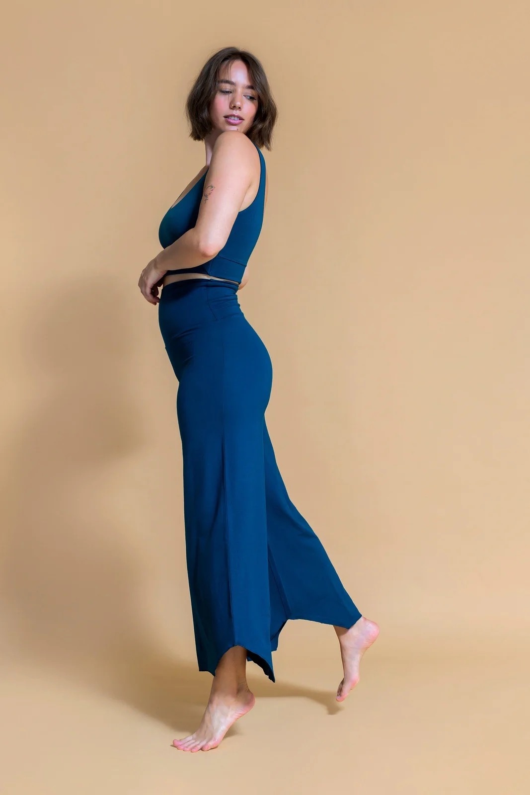 It's high and foldable waist ensures a personalized fit, enhancing your comfort during both practice and daily activities. The pants feature a gentle flare, creating an elegant and fluid outline. The high-rise waistband offers adaptable styling options, and the Bamboo and Elastane blend fabric provides a soft, ensuring both comfort and eco-consciousness.