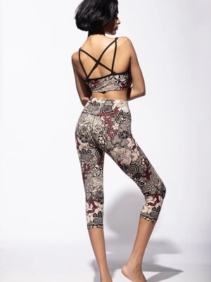 These High Waist Cream Cotton spandex Capri pants or yoga 3/4 leggings are in a gorgeous Cream color with our black Nagomi print with red coloured fishes. Made in the best quality cotton spandex, made to last and love for years.