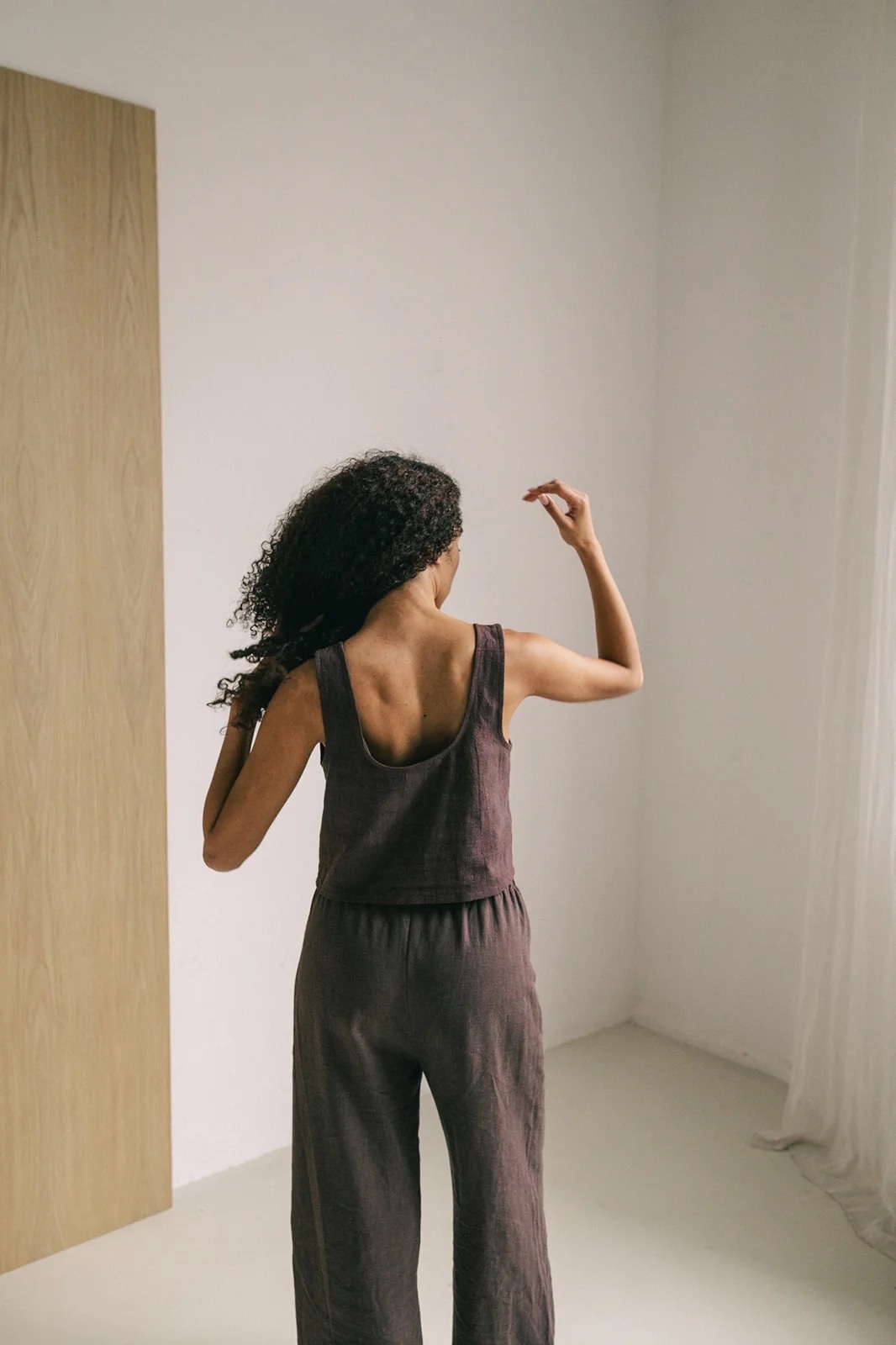 Cropped linen top. Can be used in restorative, yin or meditation classes as well as during the day. Comfortable, breathable and a perfect item on warmer days.
