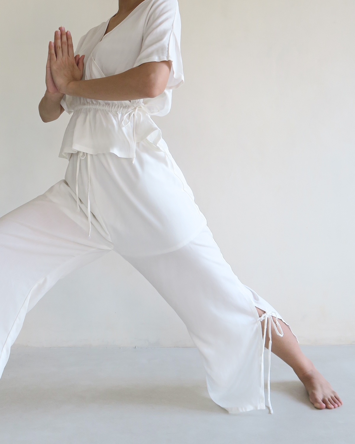 Sustainability: All INTI Yoga Studio products are ethically produced In Surabaya. We work with local tailors and sourced our materials in Surabaya to reduce foot carbon prints. Aside from the use of local materials, INTI Yoga Studio aims to avoid excess production and textile waste by making most of the products one-size-fits-all.