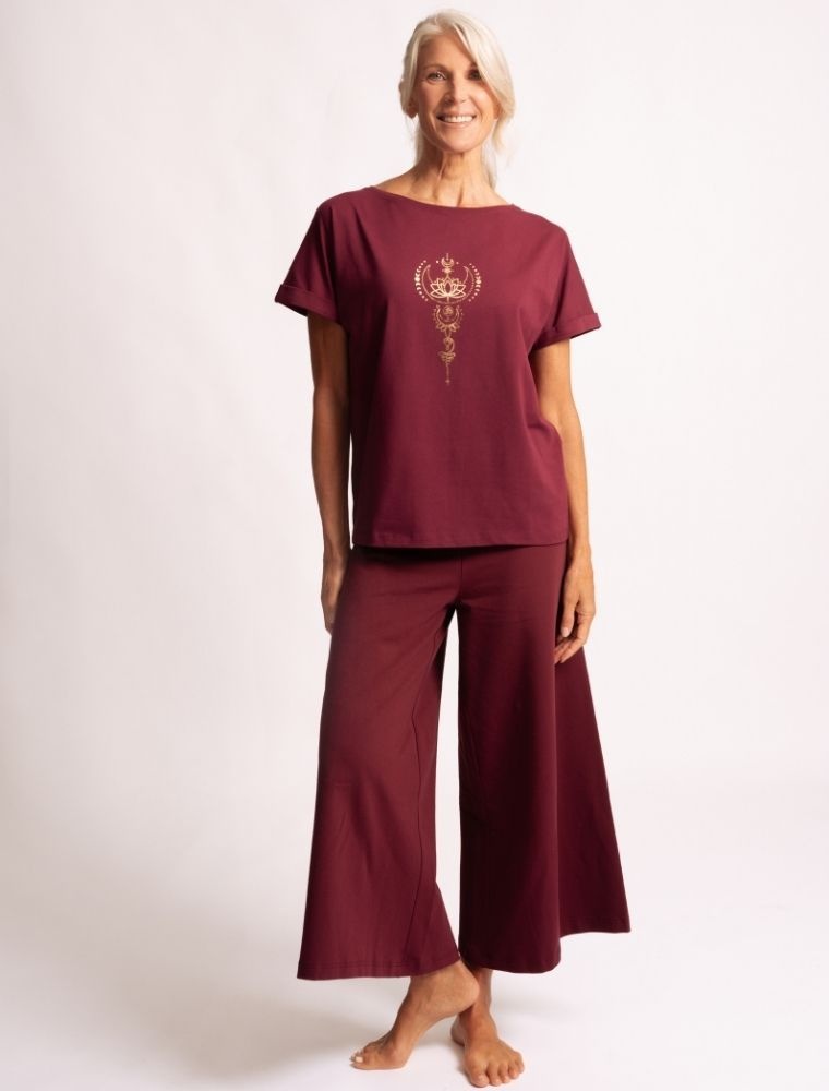 The high quality material made of bamboo viscose and organic cotton offers not only a beautiful and great appearance, but also ultimate comfort and durability. This timeless and elegant shirt can easily be combined with our yoga leggings and suits any skin tone.