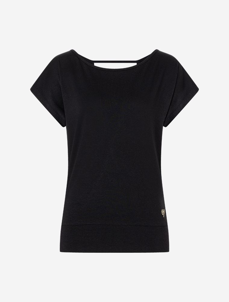 The name “Jangama” comes from Sanskrit and means “mobile” or “alive.” This liveliness is reflected in the design: a refined, open V-neck back cut gives the shirt a special touch. A delicate gold print with a lotus flower on the back and the OM symbol in the shape of a heart on the hip emphasize your inner alignment.