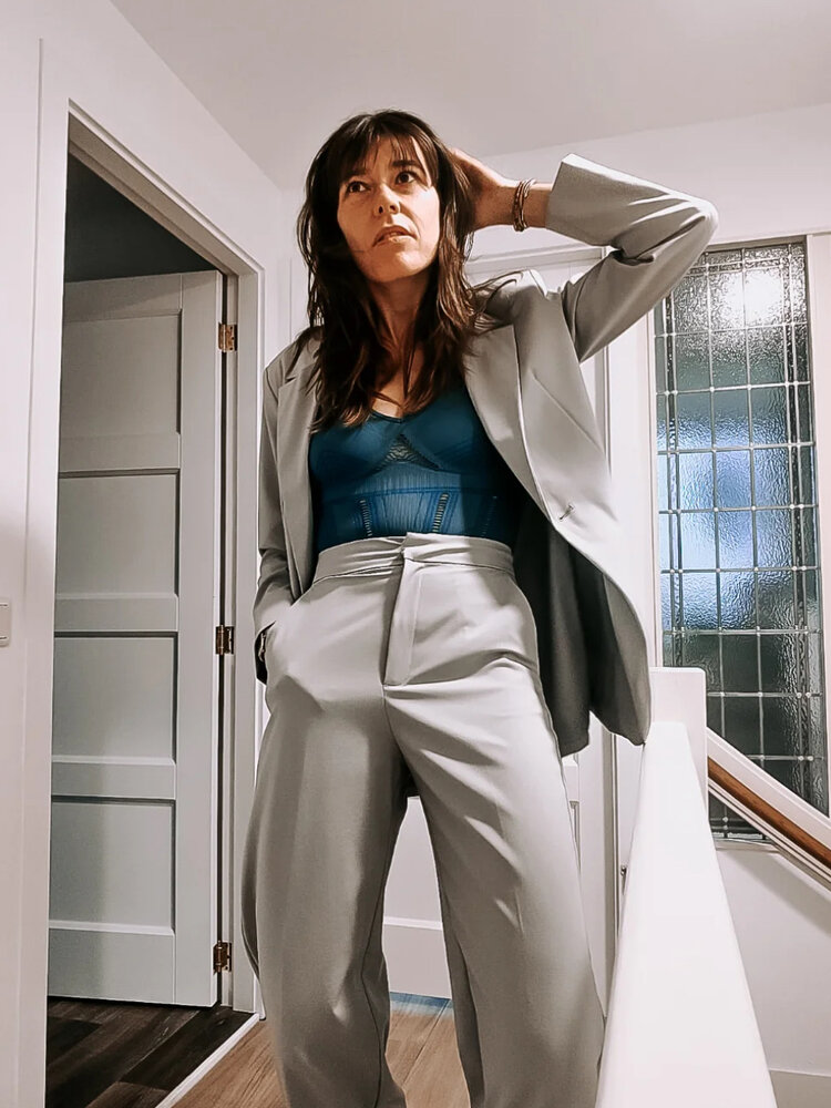 (She could have worn size XS-S Bra and XS-S embracer top but she preferred a less tight feeling)