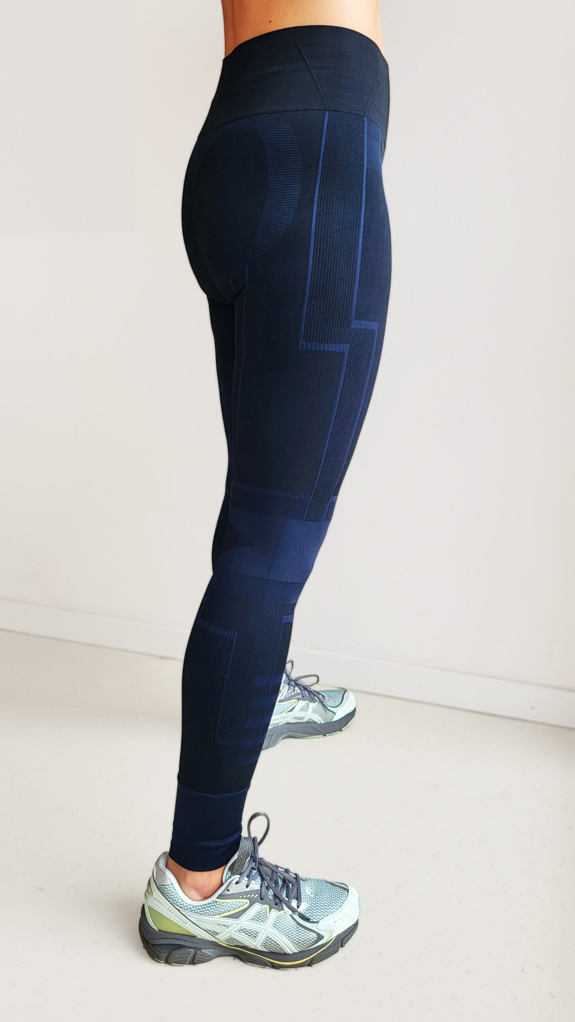 Ankle length. High waisted rib with high compression for a more sculpted silhouette. Push-Up & Shaping-effect. Squat proof! (non-transparent). Strategically placed texture for a streamlined look.