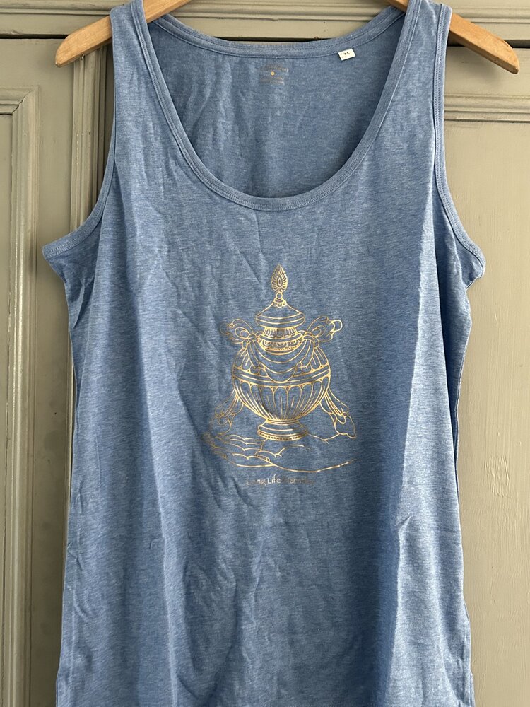 Super soft Maratika foundation tank top with beautiful Bumpa vase print on chest. By purchasing this tank top you support the Maratika Foundation in Nepal. See also Maratika Button for more info.