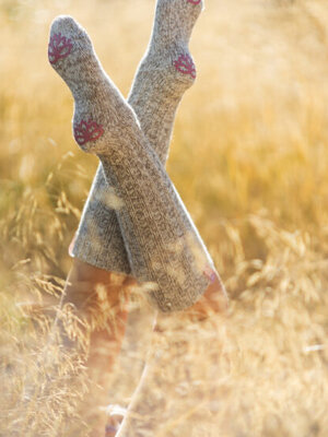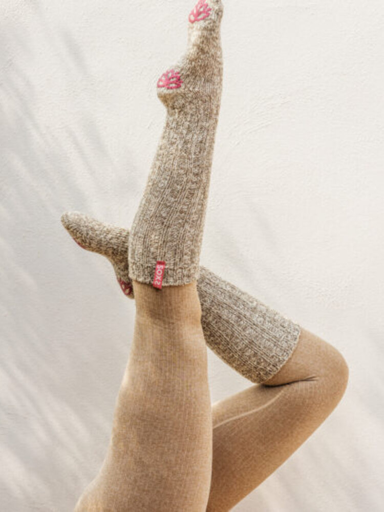 Woolen Socks Antislip in Beige Wool Label Rose Shadow Knee High