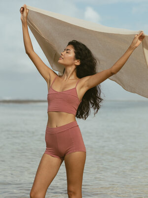 Take your body measurements to find your size using the size chart. Please remember that every body is unique and that all sizes shown in the size chart are approximate due to the elasticity and adaptability of our fabrics.
