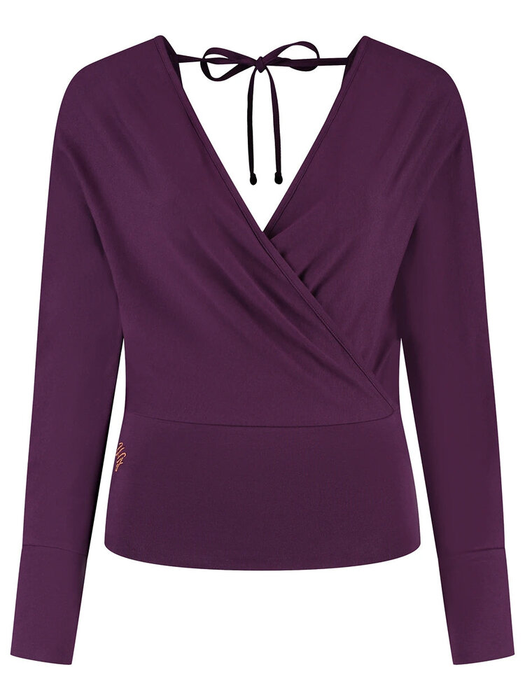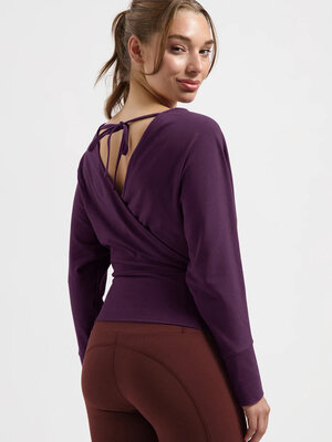 Wat de Ala top zo bijzonder maakt? De open rug met gekruiste strikbanden geeft een subtiel vrouwelijke touch. De diepe V-hals aan de voorkant maakt deze long sleeve ideaal om te dragen over een yoga bh of aangesloten top. De brede tailleband zorgt ervoor dat de top mooi op zijn plek blijft, perfect voor pilates en yoga.