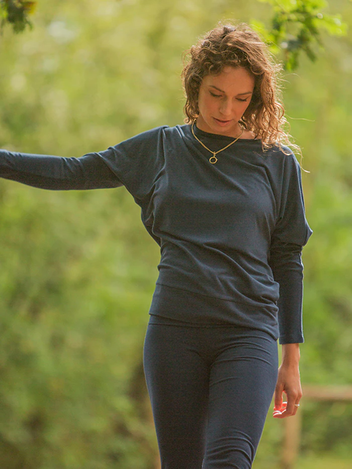 De Budhi loose fit yoga shirt is je nieuwe beste tijdens yoga. De Budhi yoga longesleeve is gemaakt van een speciale mix van duurzame bamboe en biologisch katoen, met een beetje lycra. Match deze fijne dry fit top met lange mouwen met een strakkere yoga tank en of yoga bh top.
