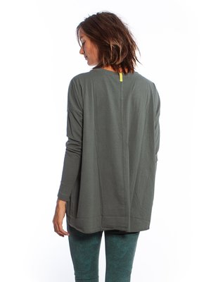 Hoewel het een beetje groot valt, voegen de aangesloten mouwen een vrouwelijk tintje toe en krijg je een ontspannen look. Draag hem met een riempje eronder en een paar van onze strakke lange leggings.