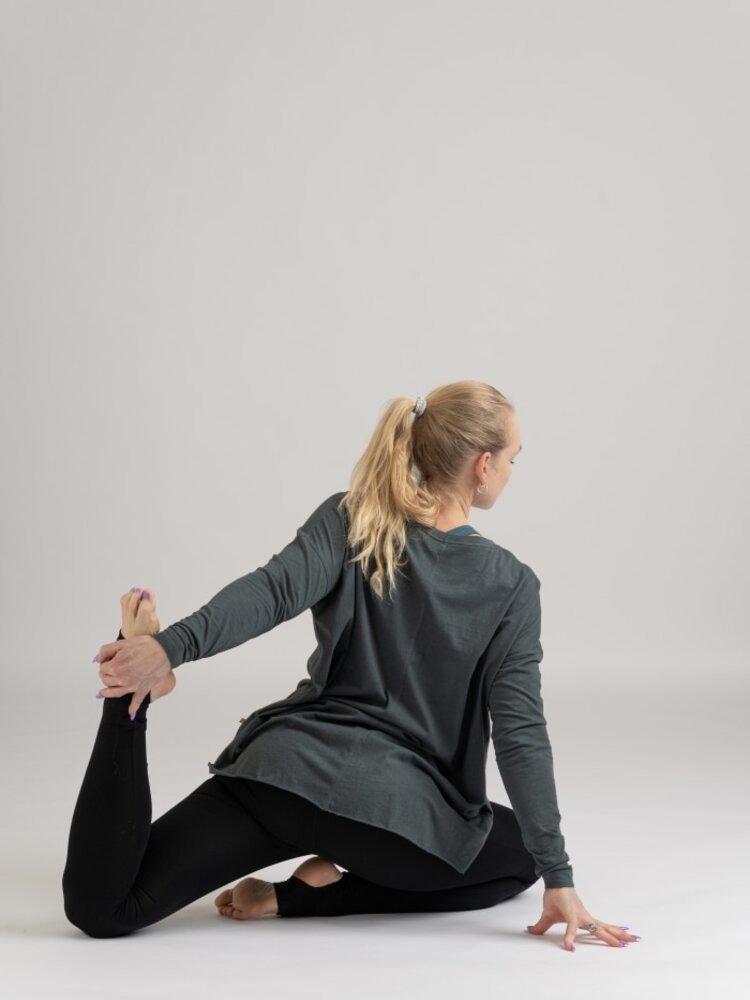 Als je iets nodig hebt voor of na je yoga- of pilatesbeoefening, is dit losvallende Drapy-shirt een uitstekende keuze. Het is niet te warm en de superlichte jersey is verrassend zacht. Drapy Tee is ook heel comfortabel om te dragen tijdens een langzamere yoga les, omdat het iets langer aan de achterkant is en je rug mooi afdekt.