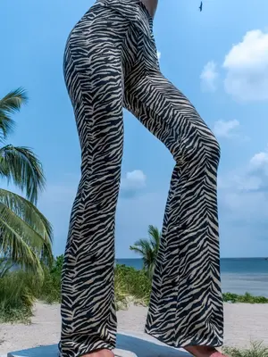 De flare legging heeft een zwart cream zebraprint. Ze zijn perfect om in te stretchen, omdat de hoogwaardige katoenen spandex met je lichaam meebeweegt. Je hoeft je geen zorgen meer te maken dat je leggings baggy worden bij de billen of knieën, hun 4-way stretch betekent dat ze je figuur te allen tijde omhelzen.