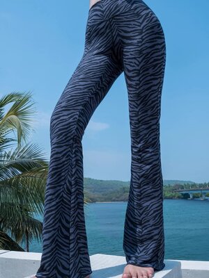 Flare Legging Super Hoge Taille Zwart Grijs Zebra