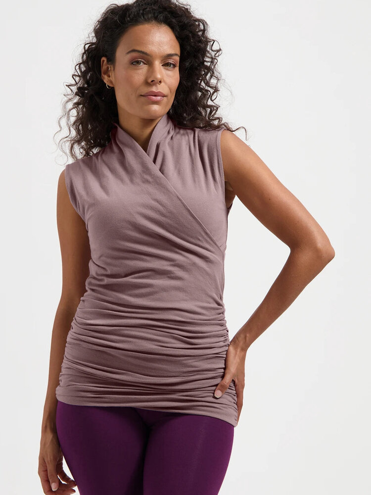 De dunne, zachte stof van de overslag yoga top Good Karma laat je huid heerlijk ademen zodat je het niet te warm krijgt. Daardoor is de top geschikt voor bijna alle vormen van yoga. Onze Good Karma is gemaakt van twee zachte en dunne laagjes stof. Dat ziet er niet alleen mooi uit, maar er schijnt ook niets door. Zo kun je ook prima zonder (sport)bh de yogales in.