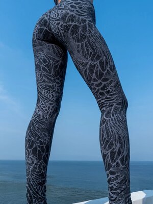 Onze nieuwe legging met FEATHER-print! Ontworpen door onze getalenteerde kunstenaar uit Zwitserland. Deze grijze legging met veren print in zwart benadrukt de verbazingwekkende details, je zult papegaaien vinden als je goed kijkt.