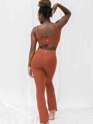 Lola is gemaakt om te dansen, dromen, wandelen, sporten, noem maar op. Deze lange broek met hoge taille heeft flatterende uitlopende pijpen en is gemaakt van OEKO-TEX gecertificeerd bamboe. Lola heeft een dubbellaagse tailleband zonder elastiek, zodat de broek niet inscheurt. Het Studio K-logo staat in goud geschreven aan de rechterkant onder de tailleband.
