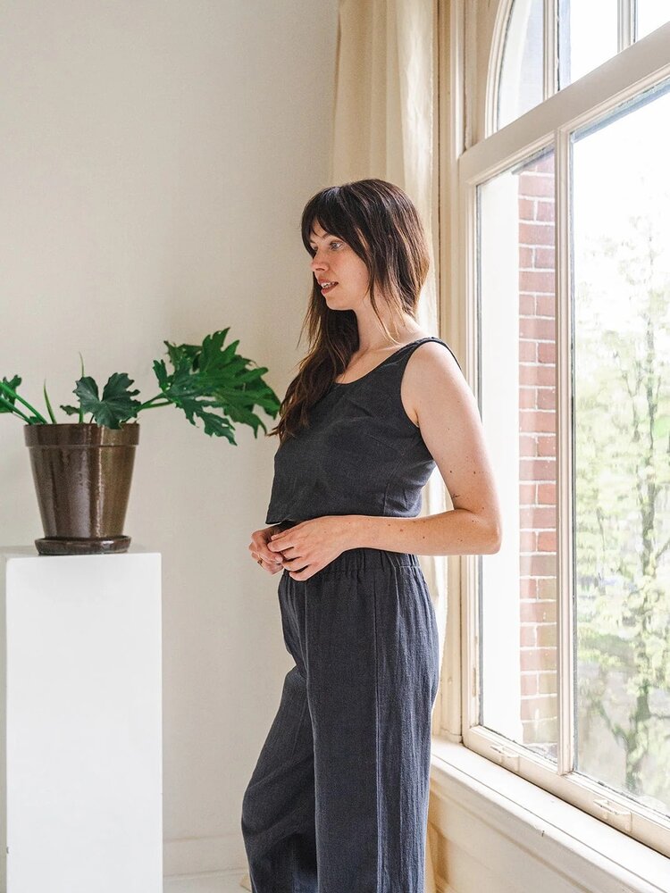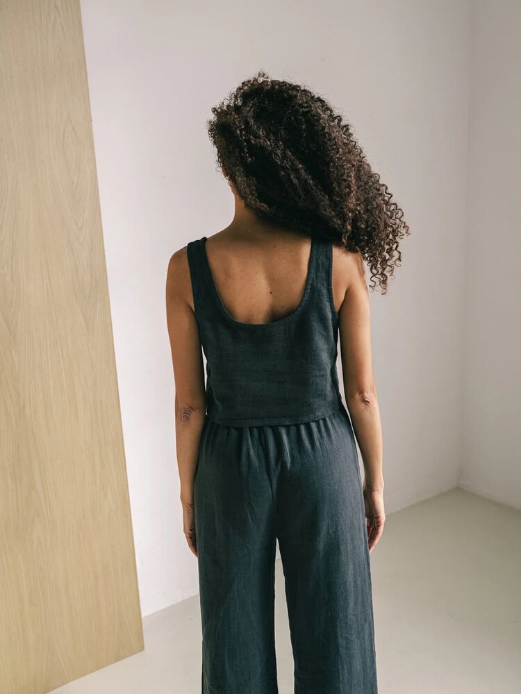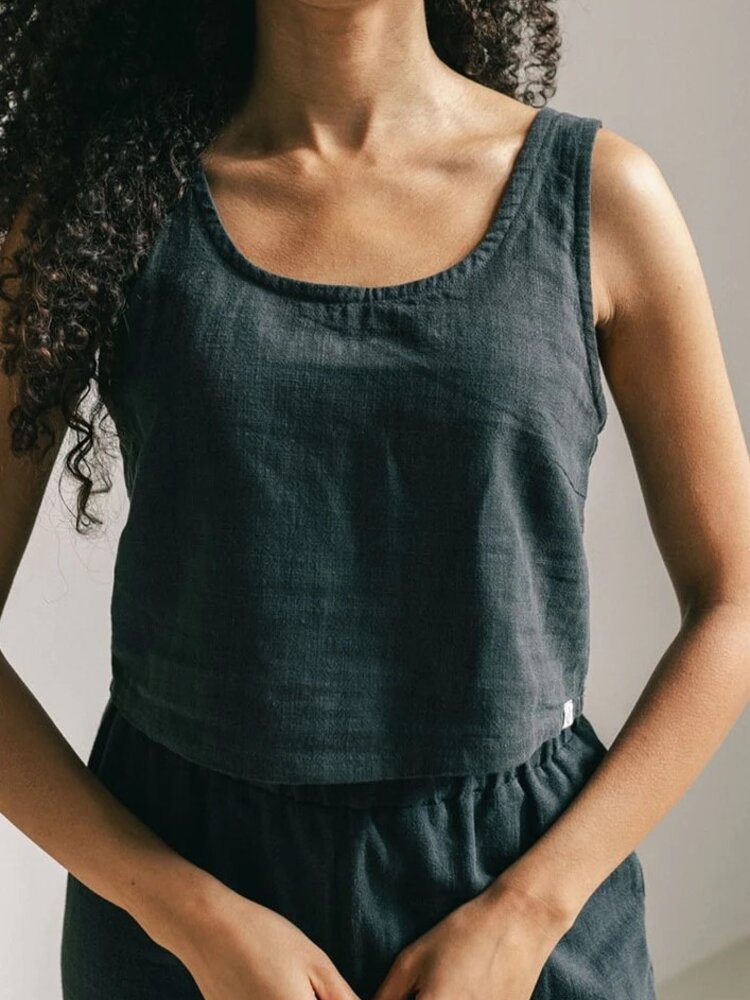 Cropped linnen top. Kan worden gebruikt in herstellende, yin- of meditatielessen en ook overdag. Comfortabel, ademend en een perfect item op warmere dagen.