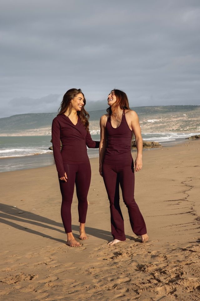 Onze Anandafied flared yoga broek is een hippe flared pants met highwaist heupband. Door deze brede heupband verschilt de Anadafied van de pranafied broek, die een hoge omslagband heeft.