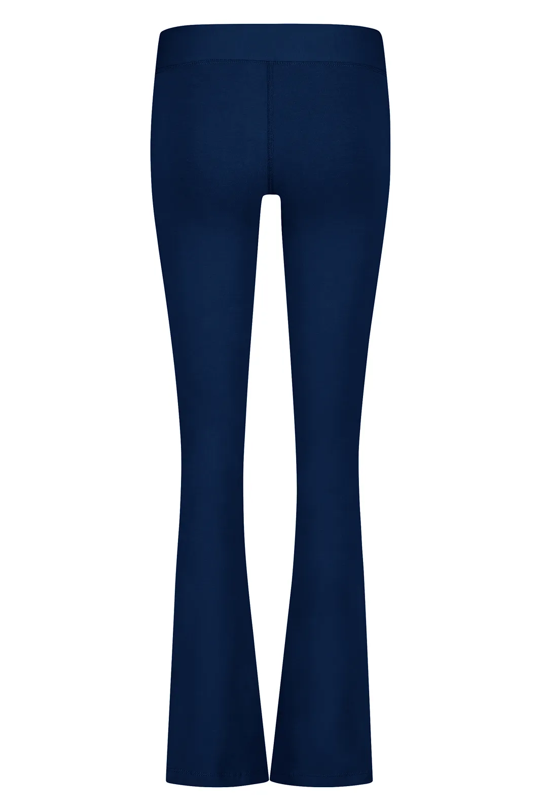 Onze Anandafied flared yoga broek is een hippe flared pants met highwaist heupband. Door deze brede heupband verschilt de Anadafied van de pranafied broek, die een hoge omslagband heeft.